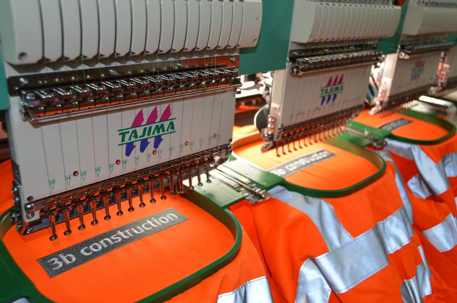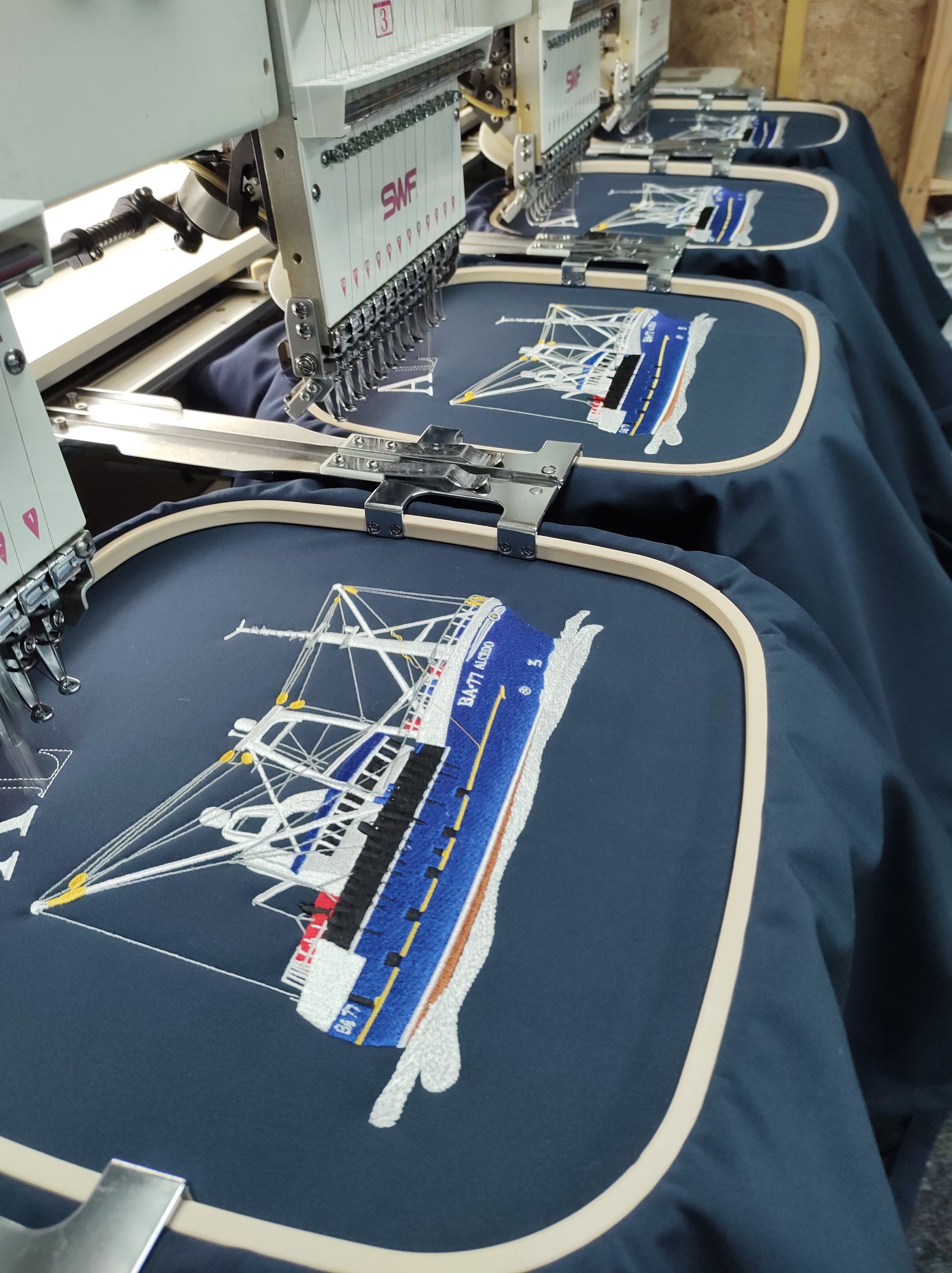 Using the very latest of embroidery equipment along with highly skilled and trained staff we produce leading work wear and leisure wear for single individuals to major corporation, With the capacity to produce 1,000' of garments per week with no loss of quality, call us to see how we can help you.